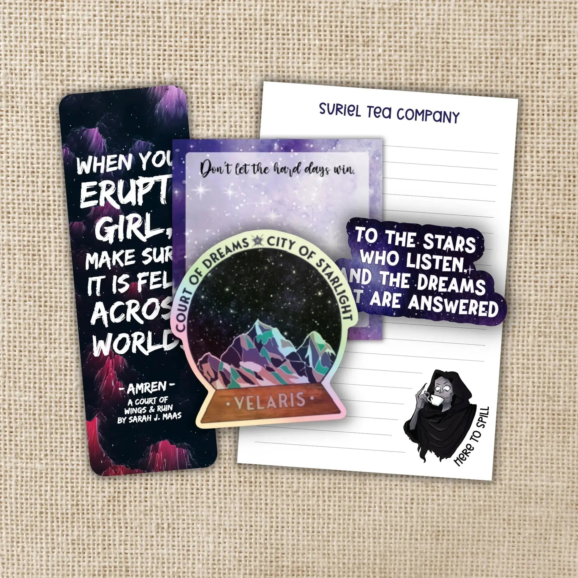 - 50-page Suriel Tea Company Notepad: Ideal for jotting down your thoughts or crafting your own tales.
