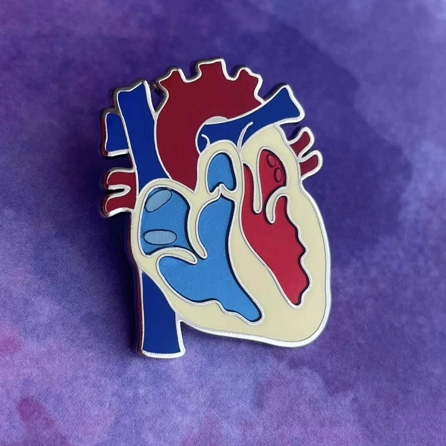 - Anatomical Heart Pin - 1.2" tall - silver nickel - hard enamel - transparent and opaque enamel