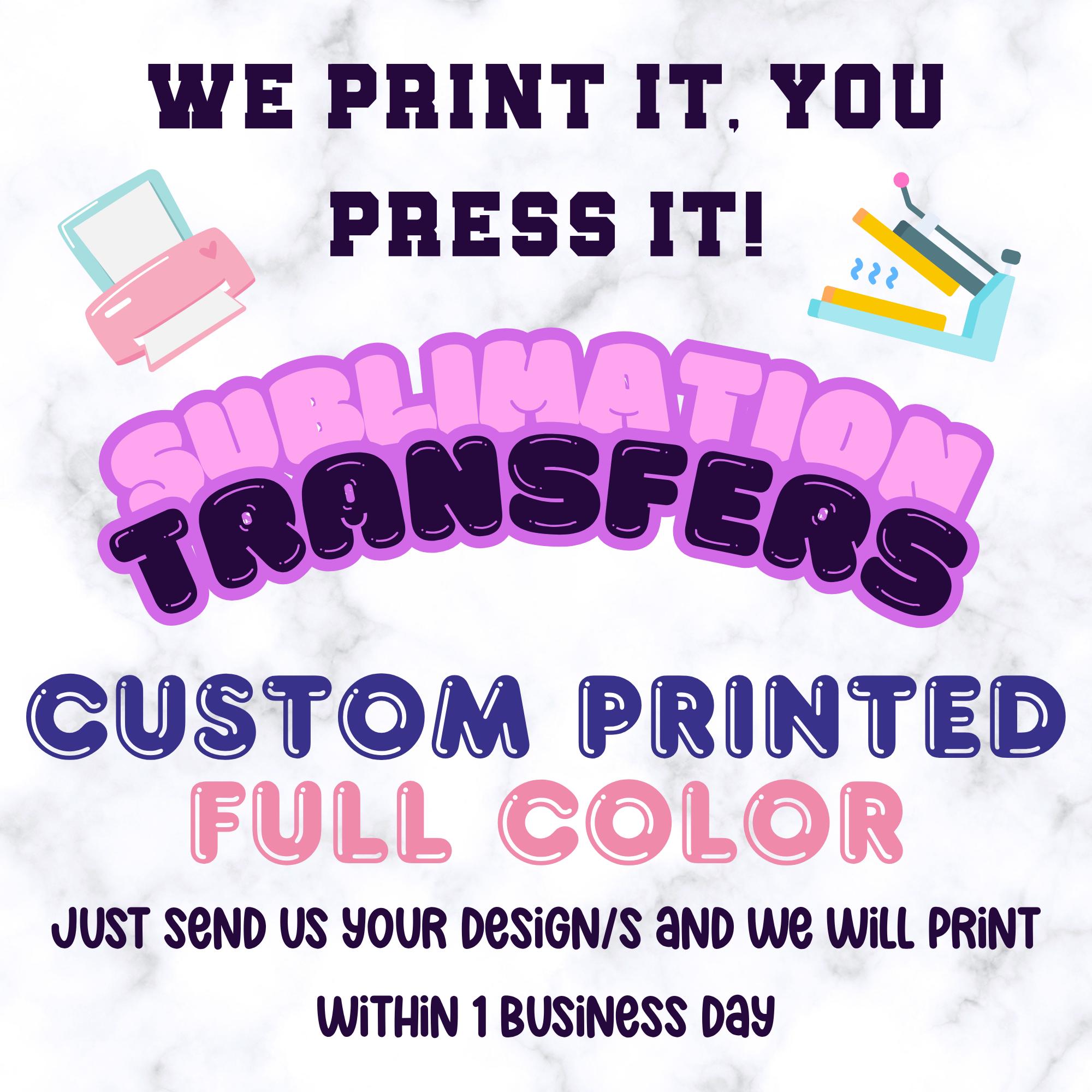 Custom Ready To Press Sublimation Transfers Ships in 24 hrs!
